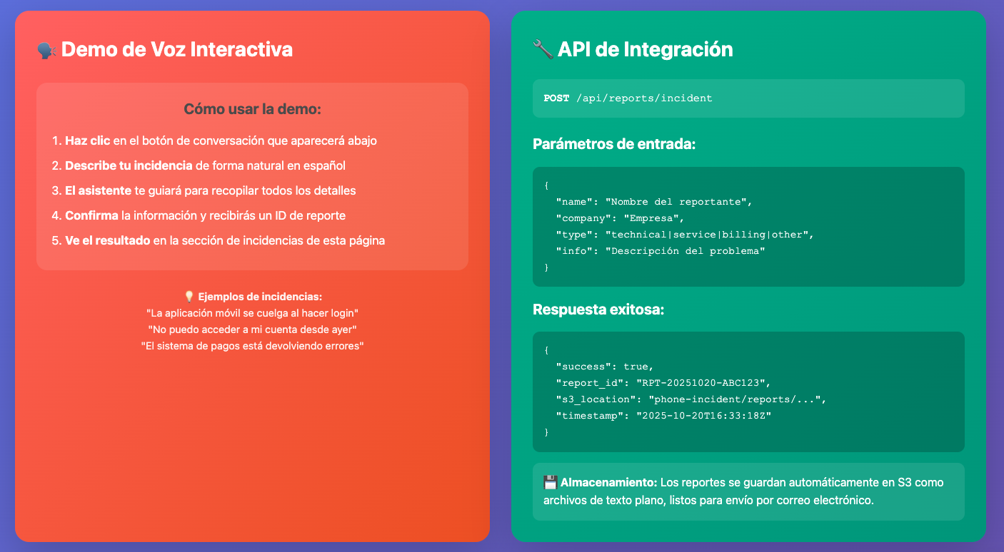 This is an interactive Proof of Concept (POC) that demonstrates the real capabilities of our AI phone agent for automatic incident reporting. It's not a simulation or video: it's technology working in real time.