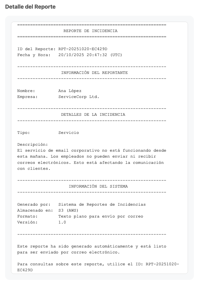 Important note: This is a simplified demo to show core capabilities. The complete system includes integrations with your specific ticketing system, CRM to query customer information, automatic notifications to technical teams, and intelligent routing according to staff expertise.