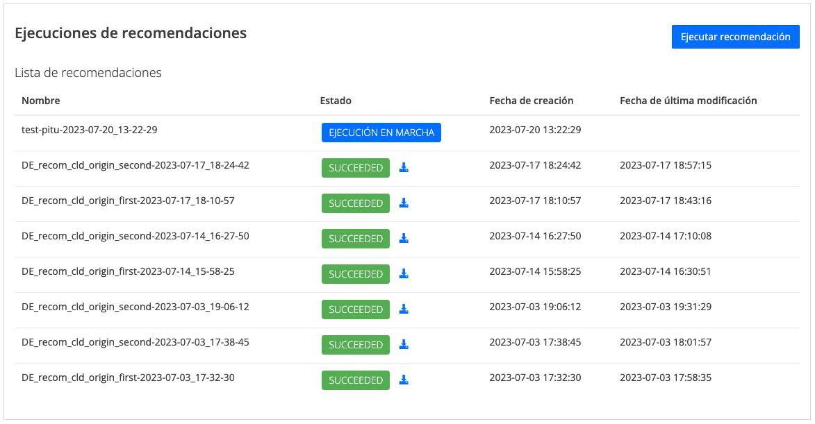 Once these steps are completed, you’ll see the new recommendation process and its status in the execution list.